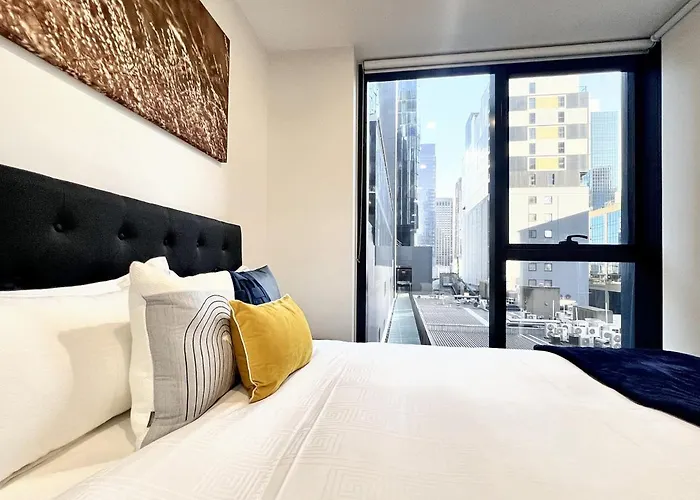 Appartamento Aura On Lonsdale è collocato nel quartiere Centro di Melbourne di Melbourne, a una distanza di 2 km dai Giardini Fitzroy e abbastanza vicino all'Acquario SEA LIFE di Melbourne. L'appartamento è ubicato a 5 minuti a piedi dal centro di Melbourne. La Cattedrale di San Patrizio è, inoltre, a circa 20 minuti a piedi.